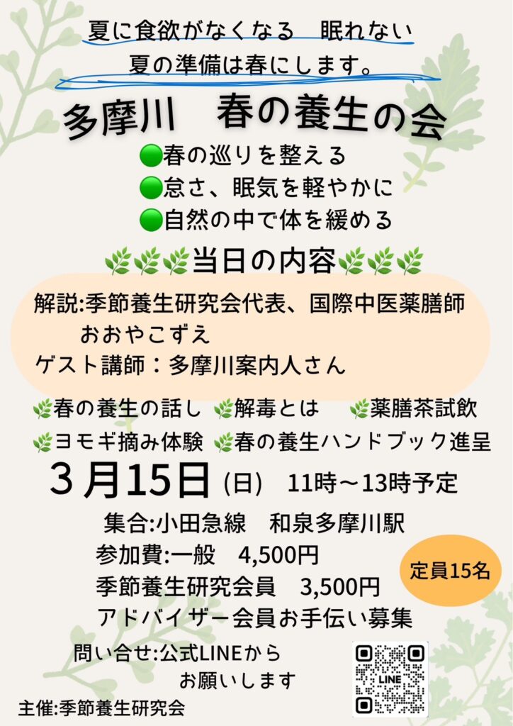 季節ごとの養生法を実践し、心身の健やかさを育てます。