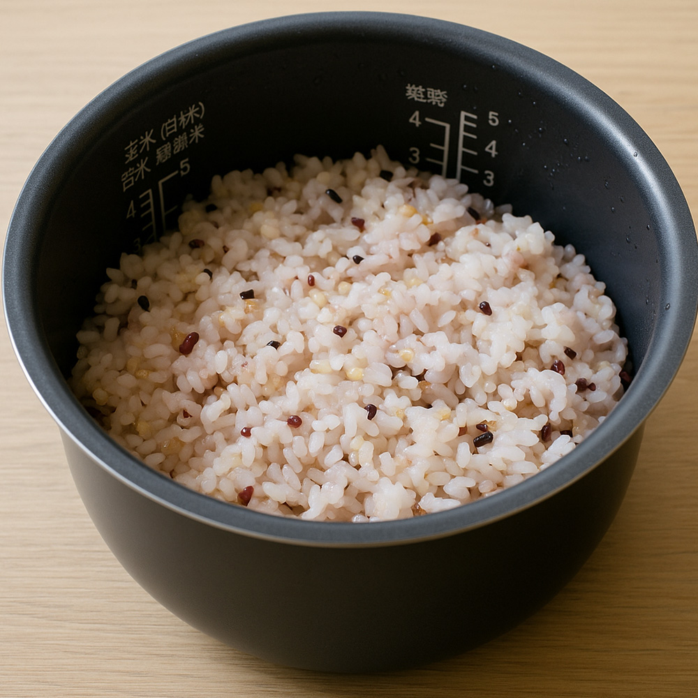 雑穀ごはんを1合分炊き、炊き上がったら軽く蒸らして粗熱を取ります。