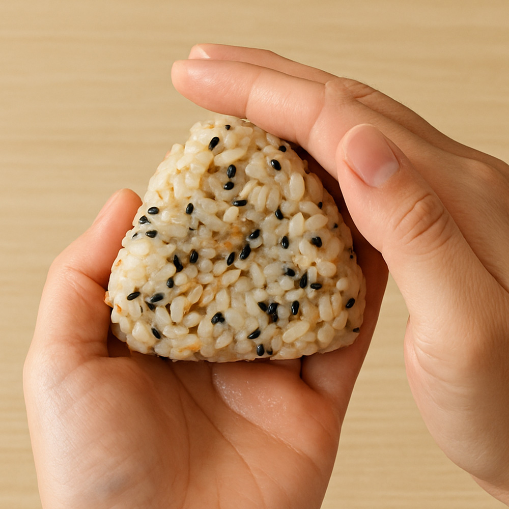 手を水で湿らせ、食べやすいサイズに握ります。小さめの三角形または丸型がおすすめです。